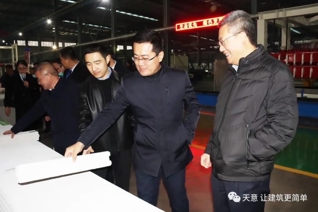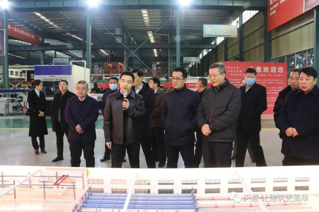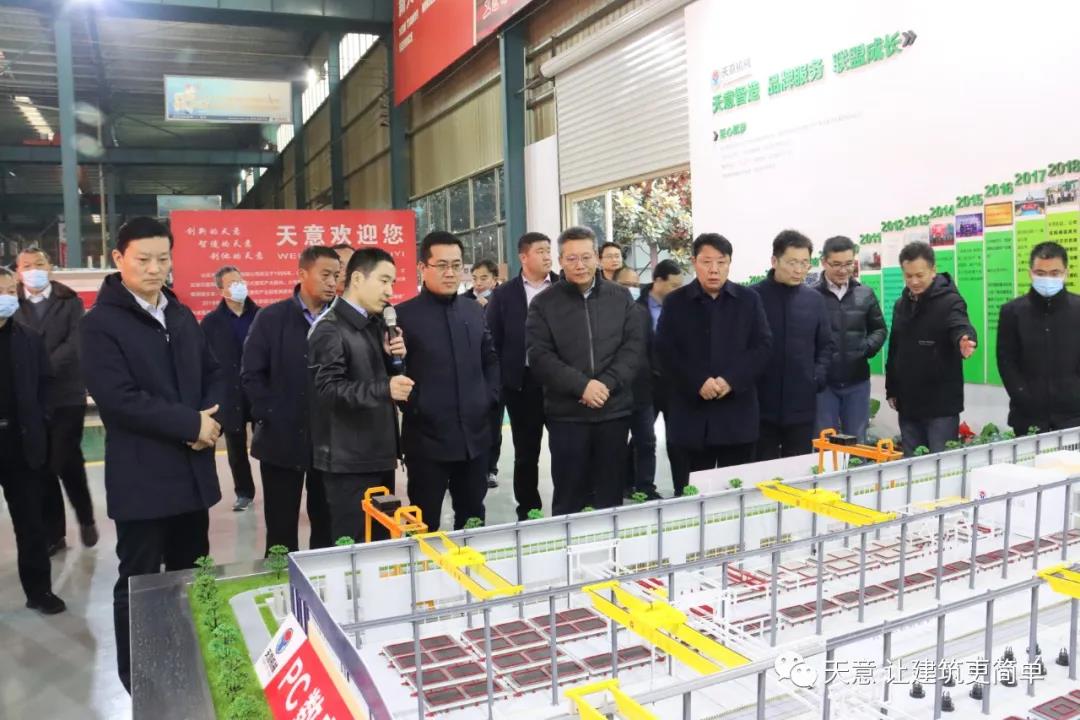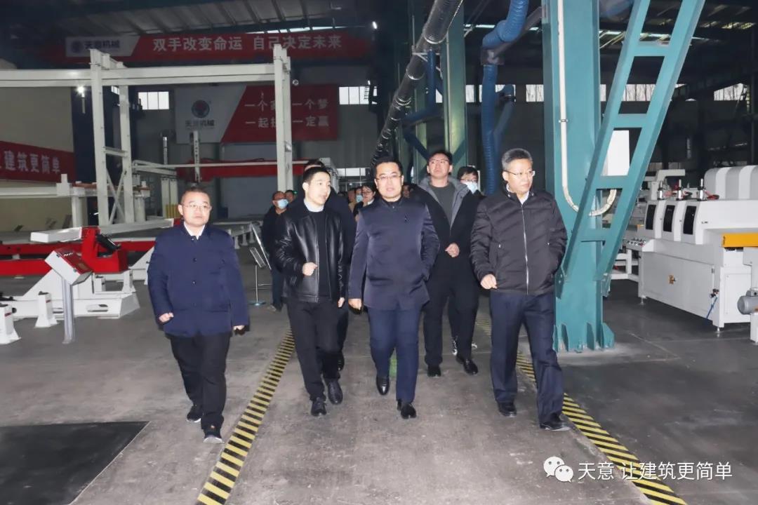 12月19日下午,嘉祥縣委副書記江峰一行蒞臨天意機械考察全市新舊動能轉換現(xiàn)場觀摩項目——裝配式建筑自動化PC生產線項目。兗州區(qū)區(qū)委副書記寇寧,發(fā)展和改革局副局長劉守全,天意機械總經理劉海龍等領導陪同考察。