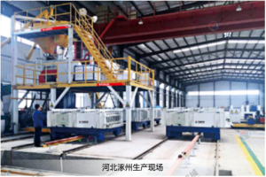 天意公司自主研發(fā)的大型攪拌設備配有自動配料系統(tǒng),結(jié)合材料的性能使料漿攪拌更均勻,能夠很好的融合在一起。料漿泵送系統(tǒng)更好的將攪拌好的料漿輸送到設備里面,澆注模式更簡單方便。發(fā)泡系統(tǒng)采用變頻發(fā)泡技術(shù),提高了發(fā)泡速度,節(jié)省了原材料,墻板成型機自動行走,產(chǎn)品成型速度高。