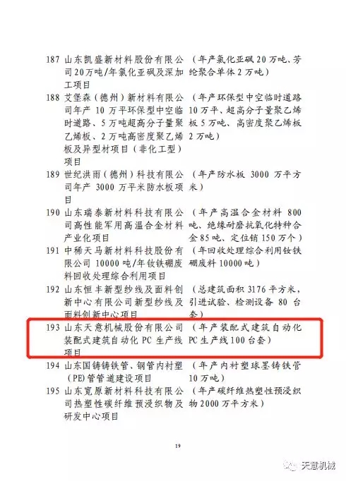 2020年2月 12日,天意機(jī)械的裝配式建筑自動(dòng)化PC生產(chǎn)線項(xiàng)目入選2020年省新舊動(dòng)能轉(zhuǎn)換重大項(xiàng)目庫第一批優(yōu)選項(xiàng)目。對(duì)于優(yōu)選項(xiàng)目省內(nèi)各級(jí)政府將會(huì)進(jìn)一步加大政策協(xié)調(diào)支持力度,全面落實(shí)土地、能耗、用水、環(huán)境容量、資金等“要素跟著項(xiàng)目走”機(jī)制,全面建立項(xiàng)目評(píng)審綠色通道,簡化審查審批環(huán)節(jié),在依法合規(guī)前提下加快項(xiàng)目手續(xù)辦理進(jìn)度。天意機(jī)械的裝配式建筑自動(dòng)化PC生產(chǎn)線項(xiàng)目入選省優(yōu)選項(xiàng)目,既體現(xiàn)了省政府對(duì)該項(xiàng)目的重視,也體現(xiàn)出該項(xiàng)目具有新舊動(dòng)能轉(zhuǎn)換的先進(jìn)性。